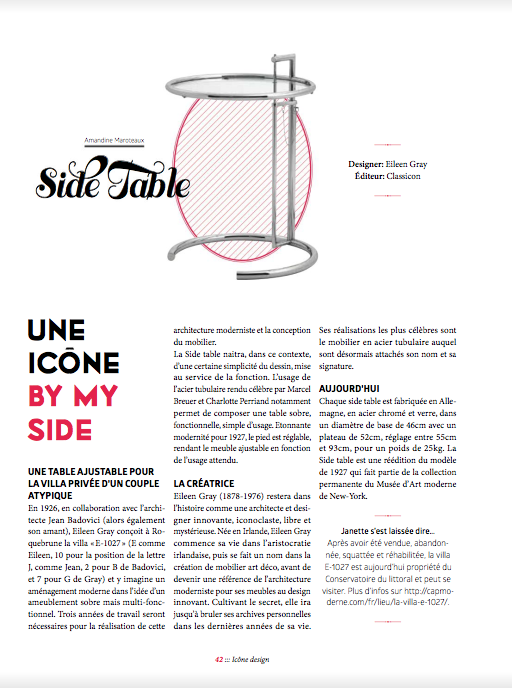Une table ajustable pour la villa privée d’un couple atypique. En 1926, en collaboration avec l’architecte Jean Badovici (alors également son amant), Eileeen Gray conçu à Roquebrune la Villa ” E 1027″ et y imagine un aménagement moderne dans l’idée d’une ameublement sobre mais multi-fonctionnel.