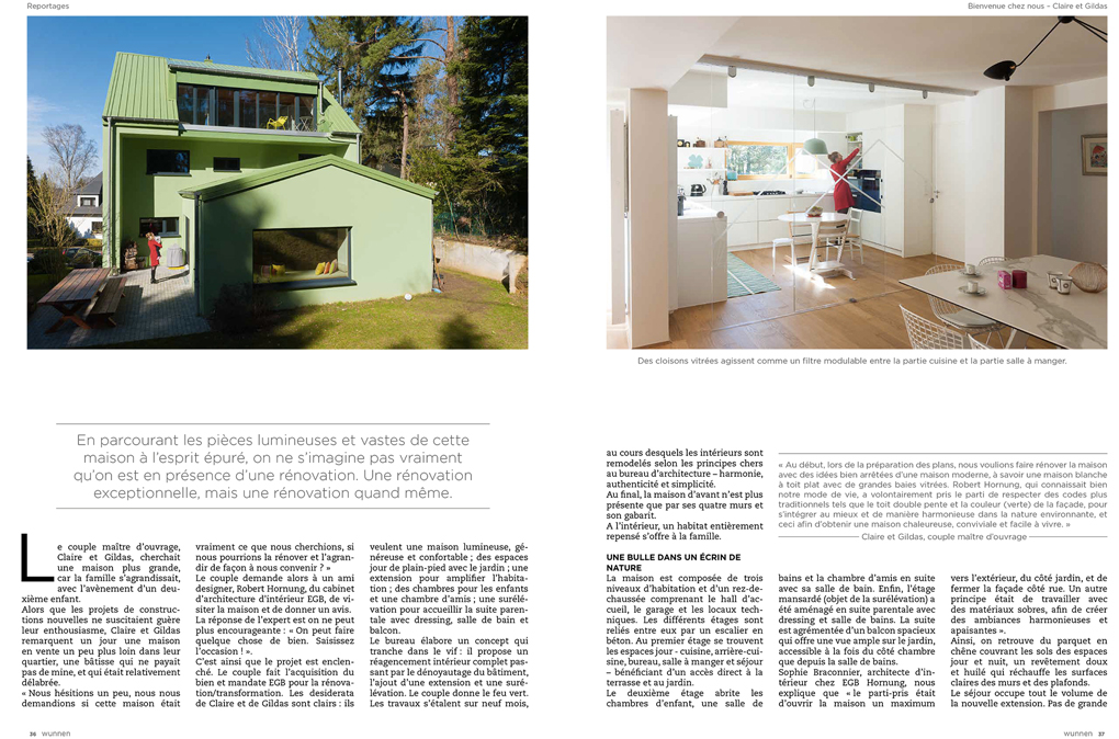 En parcourant les pièces lumineuses et vastes de cette maison à l’esprit épuré, on ne s’imagine pas vraiment qu’on est en présence d’une rénovation. Une rénovation exceptionnelle, mais une rénovation quand même.