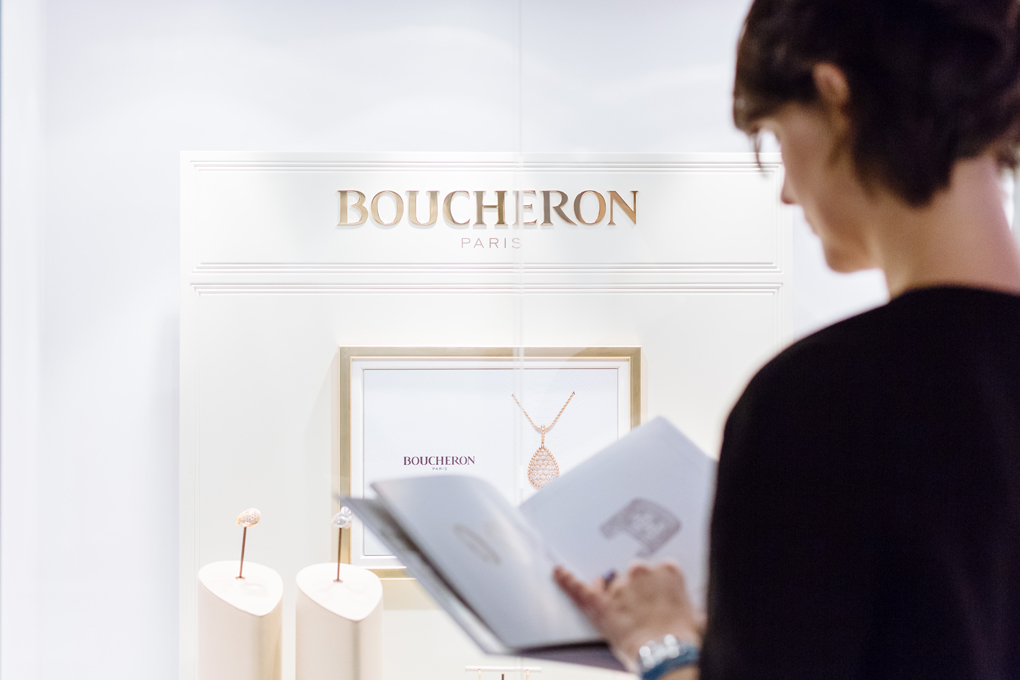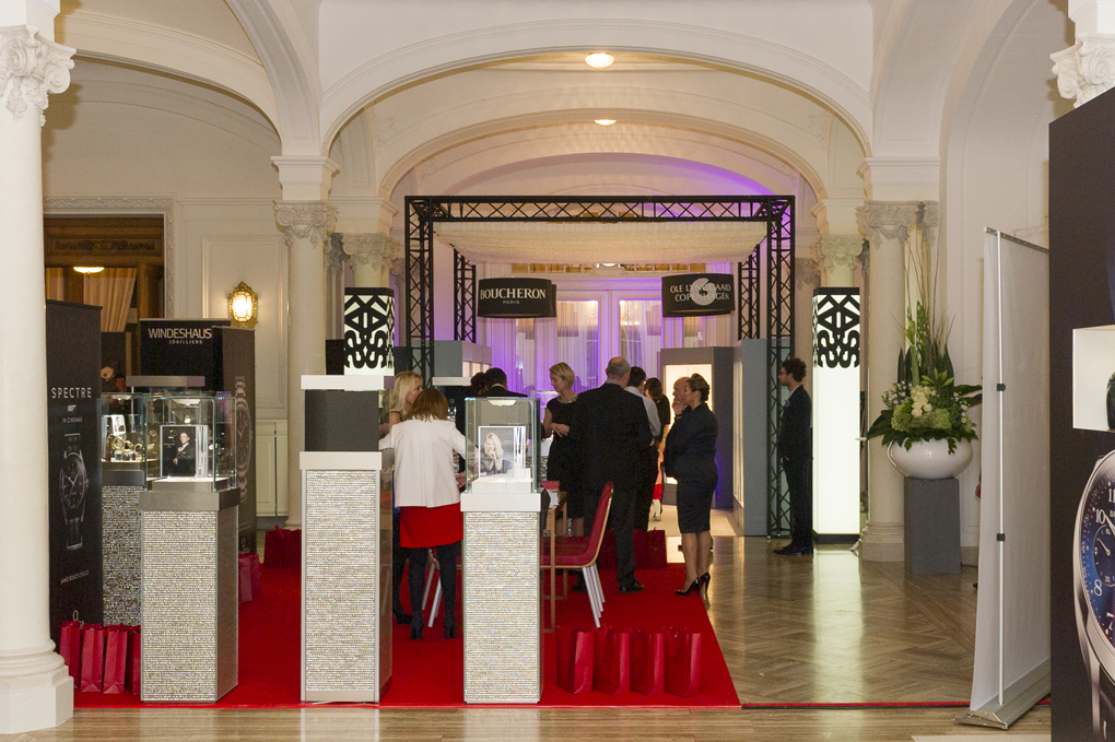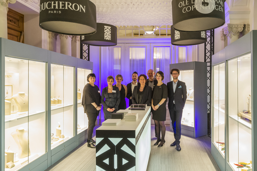 Depuis 4ans, nous avons le plaisir de concevoir les espaces d’exposition de la maison Kass-Jentgen lors des journées de la passion horlogère. Concilier les identités de maisons telles Chaumet, Boucheron, Ole Lyynggard nécessite de travailler sur leurs valeurs communes, en particulier l’artisanat d’art. Grâce au délicat travail du papier de Procédés Chenel, et à l’excellente maitrise du Corian de nos menuisiers, chaque exposition décline les mêmes codes tout en réservant de jolies surprises aux visites. Ainsi, un plafond en papier alvéolaire a succédé à un arbre…en papier